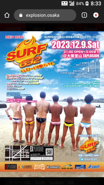 2023 12 09 sat @大阪堂山 EXPLOSION Surf 632 men only 9:00〜5:00 ミヤコ/ギア/キョロ/ミルクボーイ/ムサシ ショコラ/べべ/マコミ/シモーヌ/アメノウズメ ヒデ&キック