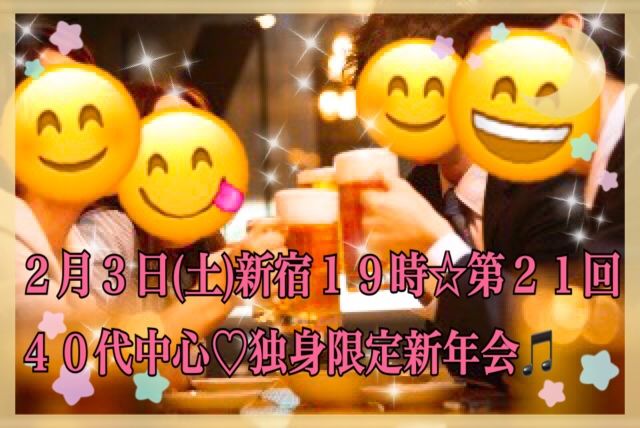 明けましておめでとうございます♪ 今年もよろしくお願いいたしますぴかぴか(新しい) 2月3日(土) 新宿19時〜21時♪ 第21回40代中心♡独身限定新年会♫ 当会の趣旨としては、美味しいお料理やお酒を飲みながら自然の流れで会話を楽しんでいただく大人のフリースタイル恋活婚活飲み会になります♫ 参加資格は35歳〜56歳までの恋活婚活をしている独身フリーの方♪ 募集人数は20名位です♪ 飲み放題生付き+お料理9品コースになります(๑´ڡ`๑) お店のコース料理はこんな感じです↓ ◎日替わり前菜