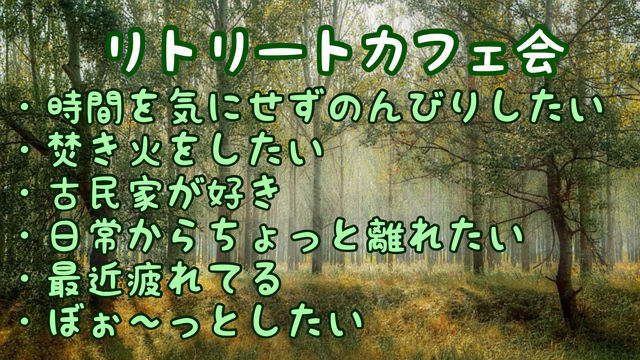 ○●○福岡の友達作り♪@九州カフェ会●○● こんばんは。 唐津deリトリートカフェ会を開催します♪ 磁場の高い古民家で、日常から離れてのんびりリラックスしよう♪という会です。 スマホの電源を消して、デジタルデトックスするもよし のんびり読書を楽しむもよし 焚火を見ながらぼぉ〜っとするもよし 静かに瞑想するもよし ゴロゴロするもよし 自然の中を散策するもよし たけのこ掘りを楽しむもよし 自由です♪ 決まってることは夕飯にバーベキュー、お風呂は五右衛門風呂、ということくらいです。 ステキな空間でのんびりし