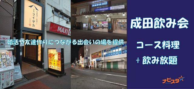 成田出会い飲み会 〜婚活や恋活、趣味活に繋がる新しい出会いを見つけよう〜 日時 3月12日 火曜日 時間 19:00〜21:30 場所 ミライザカ 成田店 千葉県成田市花崎町816‐2 若松ビルB1F 参加費 男性 6800円 女性 3800円 ※参加費はコース料理+飲み放題込みになります。 ※参加費は当日現金で支払い願います 参加対象 男性 35才〜52才 女性 35才〜52才 年齢は多少の前後OK 身分証明書(免許書、保険証など名前年齢のわかるもの)提示※男性のみ 募集人数 男性 2名〜6名 女性 2名〜6名 http://na