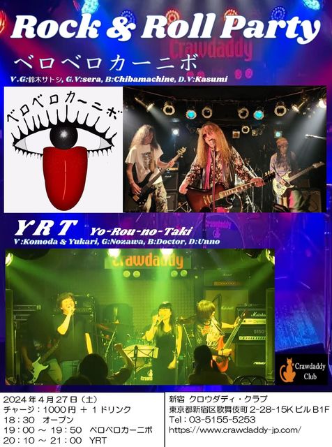 4/27 ËÜÆü¤Î¥é¥¤¥Ö¡¡ YRT & ¥Ù¥í¥Ù¥í¥«¡¼¥Ë¥Ü LIVE¡¡ OPEN 18:30 START 19:00 CHARGE 1000±ß¡¡ ¤è¤í¤·¤¯¤ª´ê¤¤¤¤¤¿¤·¤Þ¤¹¡ª¡ª