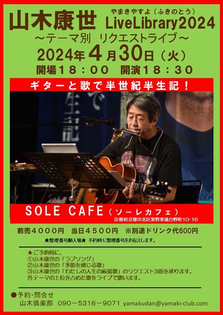 ¡Ö»³ÌÚ¹¯À¤¡¡Live Library 2024¡× ¡Á¥Æ¡Ý¥ÞÊÌ¡¡¥ê¥¯¥¨¥¹¥È¥é¥¤¥Ö¡÷KYOTO¡Á ²ñ¾ì¡áSOLE CAFE¡Ê¥½¡Ý¥ì¥«¥Õ¥§¡Ë µþÅÔÉܵþÅÔ»ÔË̶è»çÌîÅìÏ¡ÂæÌîÄ®10-16 https://solecafe.jp/shop-info/ ³«¾ì¡á£±£¸¡§£°£°¡¡³«±é¡á£±£¸¡§£³£° Á°Çä¡á£´£°£°£°±ß¡¡ÅöÆü¡á£´£µ£°£°±ß¡¡¢¨ÊÌÅӥɥê¥ó¥¯Â壶£°£°±ß ¡úÀ°ÍýÈÖ¹æ½çÆþ¾ì¡ú ¡ú¤´Í½Ìó»þ¤Ë¡¢ ¡»³ÌÚ¹¯À¤¤Î¡Ö¥é¥Ö¥½¥ó¥°¡×¡¡ ¢»³ÌÚ¹¯À¤¤Î¡Öµ¨Àá¤ò´¶¤¸¤ë²Î¡×¡¡ £»³ÌÚ¹¯À¤¤Î¡Ö¤ï¤¿¤·¤Î¿ÍÀ¸¤Î±þ±ç²Î¡×¤Î¥ê¥¯¥¨¥¹¥È3¶Ê¤ò¾µ¤ê¤Þ¤¹¡£³Æ¥Æ¡¼¥Þ¤Î¾å°Ì¤òÀê¤á¤¿²Î¤ò¥é¥¤¥Ö¤Ç²Î¤¤¤Þ¤¹¡£ ͽÌó¡¦Ìä¹ç¤» £°£¸£°¡Ý