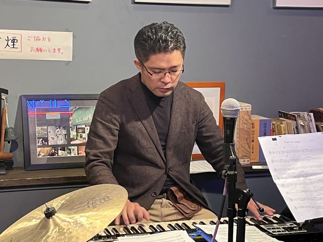 寺島優樹(org)さん、藤田絢三(sax)さん、丸谷茜(ds)さんのトリオです。 寺島さんは、これまで何度もピアニストとしてご出演いただきましたが、オルガンを演奏します。 尚美音大を卒業後、2006年にNYへ短期留学。2008浅草ジャズコンテストソロ部門でグランプリ受賞。2015年再びNYへ行き、ハモンドオルガンに感銘を受けたとのこと。 藤田さんは、明治大学ジャズ研究会でバンド・マスターを務め、早稲田大学モダン・ジャズ研究会にも所属。1990年より、バークリー音楽院パフォーマンス・サックス科に留学し、帰国後は、自らのユニットでのラ