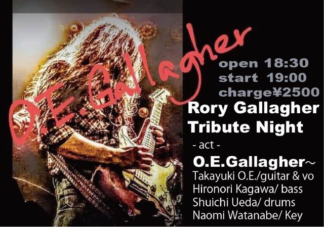 6/15 ËÜÆü¤Î¥é¥¤¥Ö¡¡ O.E.Gallagher(as Rory Gallagher) LIVE¡¡ OPEN 18:30 START 19:00 CHARGE 2500±ß¡¡ - act - O.E.Gallagher¡Á Takayuki O.E./guitar & vo¡¡ Hironori Kagawa/ bass¡¡ Shuichi Ueda/ drums¡¡ Naomi Watanabe/ Key¡¡ ¤è¤í¤·¤¯¤ª´ê¤¤¤¤¤¿¤·¤Þ¤¹¡ª¡ª