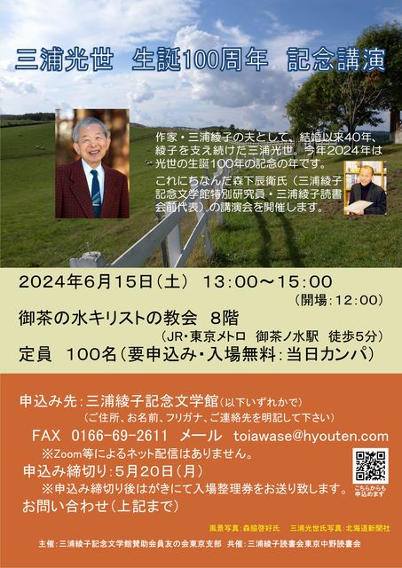 Åìµþ¤Ç³«¤«¤ì¤ë¥¤¥Ù¥ó¥È¤Î¤´°ÆÆâ¤òº¹¤·¾å¤²¤Þ¤¹¡£ 2024ǯ6·î15Æü¡ÊÅÚ¡Ë»°±º¸÷À¤À¸ÃÂ100ǯµÇ°¹Ö±é²ñ ¡Ê²ñ¾ì¡§¸æÃã¤Î¿å¥¥ê¥¹¥È¤Î¶µ²ñ¡Ë »°±º°½»ÒµÇ°Ê¸³Ø´Û »¿½õ²ñ°÷ͧ¤Î²ñÅìµþ»ÙÉô¤Ç¤Ï¡¢ºî²È¡¦»°±º°½»Ò¤ÎÉס¢»°±º¸÷À¤¡Ê¤ß¤Ä¤è¡Ë¤ÎÀ¸ÃÂ100ǯ¤òµÇ°¤·¤Æ¹Ö±é²ñ¤òºÅ¤·¤Þ¤¹¡£ ¤É¤Ê¤¿¤Ç¤â¤´»²²Ã¤¤¤¿¤À¤±¤Þ¤¹¡£¤³¤Îµ¡²ñ¤Ë¤¼¤Ò¤ª±Û¤·¤¯¤À¤µ¤¤¡£ ¹Ö»Õ¡§¿¹²¼Ã¤±Ò¡ÊÅöʸ³Ø´ÛÆÃÊ̸¦µæ°÷¡¦»°±º°½»ÒÆÉ½ñ²ñÁ°Âåɽ¡Ë ¥Á¥é¥·¤ÎPDFÈÇ https://x.gd/GsUrX Æü»þ¡§2024ǯ6·î15Æü¡ÊÅڡ˸á¸å1»þ¡Á3»þ¡ÊÀµ¸á¤Ë³«¾ì¤·¤Þ¤¹¡Ë ²ñ