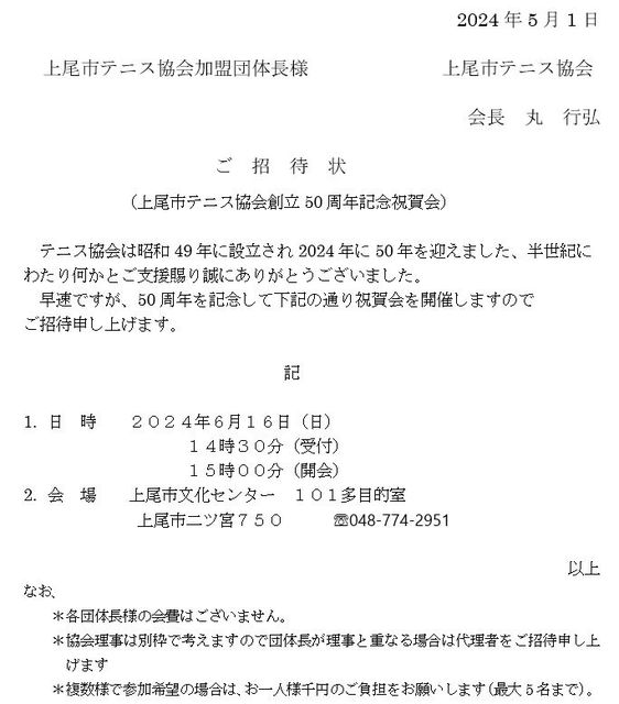 添付のとおり、祝賀会が開催されます。 参加希望の方は5/24(金)までにコメントお願いします。 立食で、お酒も出ると言っていました