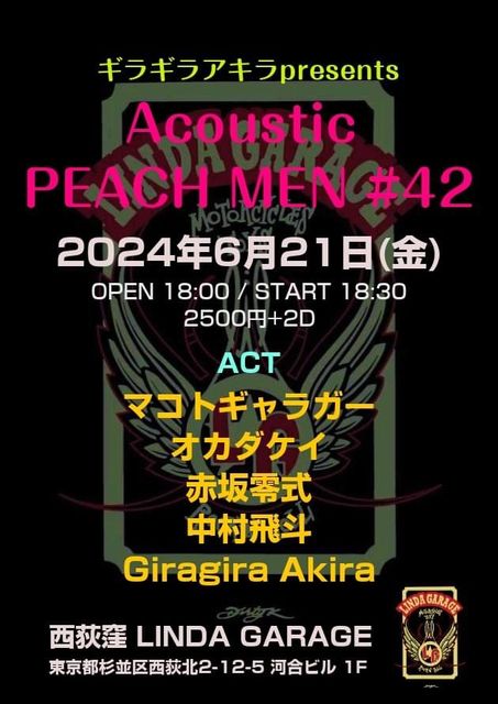 6·î21Æü(¶â)ÅìµþÅÔ À¾²®·¦ ¥ê¥ó¥À¥¬¥ì¡¼¥¸ https://map.yahoo.co.jp/v2/place/b6v0R9PeLBQ ¡Ö¥®¥é¥®¥é¥¢¥¥épresents Acoustic PEACH MEN #42¡× ½Ð±é: ÃæÂ¼ÈôÅÍ/¥®¥é¥®¥é¥¢¥¥é/ÀÖºäÎí¼°/¥ª¥«¥À¥±¥¤/¥Þ¥³¥È¥®¥ã¥é¥¬¡¼ open18:00 start18:30 ¥Á¥ã¡¼¥¸2500±ß+2DRINK ¢¨ÃæÂ¼ÈôÅÍ¥½¥í¤Ç¤Î½Ð±é¤Ë¤Ê¤ê¤Þ¤¹¡£20:30¡Á¤Î½Ð±é¡£