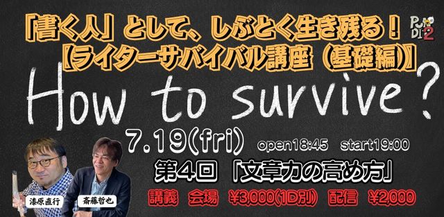7/19(金) 19:00 漆原直行 斎藤哲也【ライターサバイバル講座(基礎編)】 第4回 「文章力の高め方」高円寺Pundit2 https://pundit.jp/products/2024p2-7-19fri