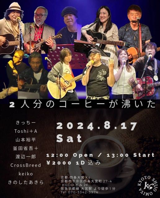 8月26日月曜日 PM7時開催 投げ銭LIVE 出演 小林万里子with鷲尾悠持郎 釜田省吾+1 いっちぃ総本舗 棟梁と弟子と見習い 天Q まつ井食堂 京都府京都市上京区東石橋町25番地 https://maps.app.goo.gl/eDguRd6JPaRXKUct6