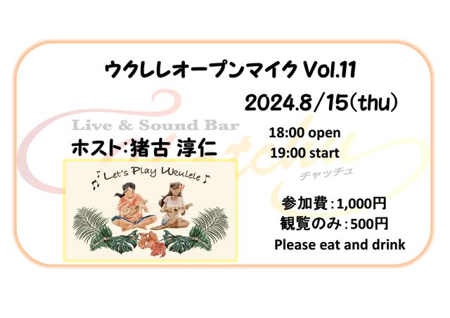 ¥¦¥¯¥ì¥ì¥Ö¥ë¡¼¥º¥·¥ó¥¬¡¼Ãö¸Å½ß¿Î»á¥Û¥¹¥È¤Ç¤ªÁ÷¤ê¤¹¤ë¥¦¥¯¥ì¥ì¥ª¡¼¥×¥ó¥Þ¥¤¥¯¤Ç¤¹¡ª ¥¦¥¯¥ì¥ì¤ÎÃÆ¤¸ì¤ê¤ä¥½¥í¥¦¥¯¥ì¥ì¤Î±éÁդϤâ¤Á¤í¤ó¡¢¥°¥ë¡¼¥×¤Ç¤Î±éÁդ⥦¥¯¥ì¥ì¤¬1ËܰʾåÆþ¤Ã¤Æ¤¤¤ì¤ÐOK¤Ç¤¹¡ª ¤´Íè¾ì¤¤¤¿¤À¤¤¤¿½ç¤Ë19»þº¢¤è¤ê±éÁÕ³«»Ï¤¤¤¿¤·¤Þ¤¹¡£ ¡ú2024ǯ£¸·î£±£µÆü¡ÊÌÚ¡Ë 18:00 open 19:00 start ¢¨22:00²»½Ð¤·½ªÎ» »²²ÃÈñ¡¡1,000±ß ¤´´ÑÍ÷¡¡500±ß ÊÌÅÓ¤´°û¿©¥ª¡¼¥À¡¼¤ò¤ª´ê¤¤¤¤¤¿¤·¤Þ¤¹¡£ ¢¨ÀèÃå10̾ÍͤΤ´Í½ÌóÍÍÍ¥Àè¤È¤µ¤»¤ÆÄº¤¤¤Æ¤ª¤ê¤Þ¤¹¡£ ¤´Í½Ìó¤ÏÅöʼç¤Þ¤Ç¥á¥Ã¥»¡¼¥¸Åù¤Ç¤ªÃΤ餻¤¯¤À¤µ¤¤¡£ ³§¤µ¤Þ¤Î¤´Í½Ìó