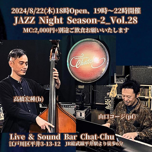 ¥Û¥¹¥È¥×¥ì¡¼¥ä¡¼¤Ë¥Ô¥¢¥Ë¥¹¥È¤Î»³¸ý¥³¡¼¥¸»á¡¢¥Ù¡¼¥¹¤Ë¹â¶¶¹¨¼ï»á¤ò¤ª·Þ¤¨¤·¤Æ¤Î¥¸¥ã¥º¥»¥Ã¥·¥ç¥ó¤Ç¤¹¡£ Ëè·îÂè4ÌÚÍËÆü¤Ë³«ºÅ¡ª¡ª ¡ù2024ǯ£¸·î£²£²Æü¡ÊÌÚ¡Ë 18:00¡Á¡¡OPEN ¡¦19:00º¢¤è¤ê¤´»²²Ã¾õ¶·¤ò¸«¤Æ¥¹¥¿¡¼¥È¤·¤Þ¤¹¡£ ¡¦²»½Ð¤·¤Ï22:00¤Þ¤Ç¤È¤Ê¤Ã¤Æ¤ª¤ê¤Þ¤¹¡£ ¢¡»²²ÃÈñ¡¡¡ï2,000 ¢¨ÊÌÅÓ¤´°û¿©¤ò¤ª´ê¤¤¤¤¤¿¤·¤Þ¤¹¡£ ¢¡¥Û¥¹¥È¥×¥ì¡¼¥ä¡¼ ¥Ô¥¢¥Î¡¡»³¸ý¥³¡¼¥¸ ¥Ù¡¼¥¹¡¡¹â¶¶¹¨¼ï ¥»¥Ã¥·¥ç¥ó¤Ë»²²Ã¤´´õ˾¤ÎÊý¤Ï¡¢¥ê¥¯¥¨¥¹¥È¶Ê¤Î¥³¡¼¥É¤È¥µ¥¤¥º¡¦¿Ê¹ÔÅù¤¬Ê¬¤«¤ëÉèÌ̤ò¤ª»ý¤Á¤¤¤¿¤À¤¯¤È¥¹¥à¡¼¥¹¤Ë¿Ê¤á¤é¤ì¤ë¤È»×¤¤¤Þ¤¹¡£ ¤â¤Á¤í¤ó¥ê¥¹