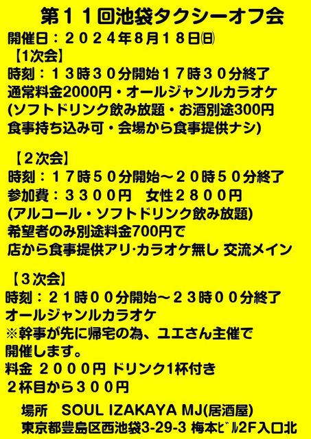 Â裱£±²óÃÓÂÞ¥¿¥¯¥·¡¼¥ª¥Õ²ñ ¡¡(½é»²²Ã¡¢ÅÓÃæ»²²Ã´¿·Þ¡ù) ¡ü´´»ö¤è¤ê°§»¢¡ü ¥¿¥¯¥·¡¼´Ø·¸¼Ô¤Î³§ÍͤȤ´ÍøÍѤµ¤ì¤ë¤ªµÒÍÍ¡¢´´»ö¤ÎGYAN¤Ç¤¹¡£ Åö¥ª¥Õ²ñ¤Ï»²²Ã¼ÔƱ»Î¤Ç¡¢¥¿¥¯¥·¡¼´ØÏ¢¤Î¤ªÏäò¤·¤¿¤ê¡¢Æü¡¹¤Îµ¿ÌäÅÀ¤ä¾ðÊó¸ò´¹¤ò¹Ô¤Ã¤¿¤ê¡¢±¿Å¾¼êƱ»Î¤Î¤ß¤Ê¤é¤º¥¿¥¯¥·¡¼¹¥¤¤ÊÊý¤Ç¸òή¤·¹ç¤¦²ñÏ÷¿¤Î¥ª¥Õ²ñ¤Ç¤¹¢ö ¥«¥é¥ª¥±¤â¤¢¤ë¤Î¤Ç¡¢»Å»ö¤Ç¤Î¥¹¥È¥ì¥¹¤Îȯ»¶¤â½ÐÍè¤Þ¤¹¡ª º£²ó¤ÏÁáÈÖ¤ÎÊý¤Ê¤ÉÌë¤Ë¥ª¥Õ²ñ¤Ø»²²Ã¤¬¸·¤·¤¤¤È¤¤¤¦Êý¤Î°Ù¤Ë¡¢Ãë´Ö¤â»þ´Ö¤òÀߤ±¤ë·Á¤Ç³«ºÅ¤·¤Þ¤¹¡£ ¥¿¥¯¥·¡¼´Ø·¸¼Ô¤Î¤ß¤Ê¤é¤º¡¢¥¿¥¯¥·¡¼¤´ÍøÍѤÎÊý¤â´¿·Þ¤Ç¤¹¡ª ¢§