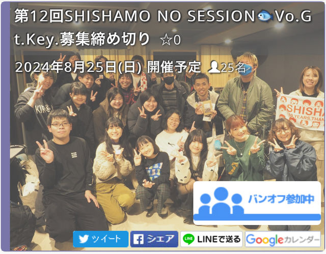 ¥¨¥ó¥È¥ê¡¼¤Ï¥Ð¥ó¥ª¥Õ¤«¤é¡ª http://bandoff.info/sessionssm12th ¤È¤ê¤¢¤¨¤ºÎ©¤Á¾å¤²¤ë¤À¤±¡ê Æü¤Ë¤Á¤Ï³ÎÄê¤Ç¤Ï¤¢¤ê¤Þ¤»¤ó¤¬ ¤³¤ÎÆü¤Ç¼è¤ì¤¿¤é¤Ê¤¡¤È»×¤Ã¤Æ¤¤¤Þ¤¹¡£ (8·î18¡¢25Æü¤Î¤É¤³¤«¥¹¥¿¥¸¥ª¼è¤ì¤¿Æü¤Ë¤·¤Þ¤¹) ¥é¥¤¥Ö¤ËÈï¤é¤Ê¤¤»þ´Ö¤ÇͽÌ󤹤ëͽÄê¤Ç¤¹¡£ »²²ÃÈñ¤Ï¾å¸Â2,500±ß¡¢¤ªµÒ¤µ¤ó¤ÏÅꤲÁ¬¤Ç¤¹¡£ ¸°Èװʳ°³Æ¥Ñ¡¼¥È8¿ÍÌܰ¤ǰìöÄùÀÚ¤ê ²¼µÍ½Äê¤Ë¹ç¤ï¤»¤ÆÄɲÃÊ罸¤È¤·¤Þ¤¹¡£ (3·î6Æü¸½ºß¥Ù¡¼¥¹¤È¥É¥é¥à¤Î¤ßÊ罸¡ª) Ã˥ܡ¼¥«¥ë²Ä¤Ç¤¹¤¬¥¡¼Êѹ¹¤ÏNG¤Ç¤¹¡£ ¶ÊÄɲᢥ¨¥ó¥È¥ê¡¼¤Ï Âè1¼¡ 3·î5Æü18»þ¡Á