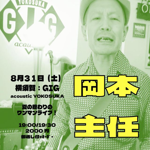 ●概要 8月31日(土) 横須賀:GIG acoustic YOKOSUKA https://swim213jp.wixsite.com/gigacoustic 19:00/19:30 2000円(御通し付)+オーダー ●内容 夏の終わりのワンマン! 燃え尽きます!(笑)。 ●タイムスケジュール 19:30〜 20:30〜 の二部構成。タップリやります! 21:30 終演予定