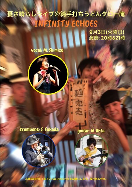 Æü»þ¡§9·î3Æü¡Ê²Ð¡Ë1st 20:00- / 2nd 21:00- ¾ì½ê¡§½ã¼êÂǤÁ¤¦¤É¤óÄ®ÅÄ¥¿¥í¡¼°Ã https://taro-an.jimdofree.com/ MC¡§ÅꤲÁ¬¡Ê¡ÜTC¡§300±ß¡Ê¾®ÈÉաˡܤ´Ãíʸ¡Ê¤ª¤¦¤É¤ó¤â¤¼¤Ò¡ª¡Ë¡Ë ¥á¥ó¥Ð¡¼¡§tb/¿¼Åĸ硡gt/ÂÀÅÄ´õ¡¡vo/À¶¿åÊýÂå 9·î¤Î¥é¥¤¥Ö¤ÏÈþÌ£¤·³Ú¤·¤¤½ã¼êÂǤÁ¤¦¤É¤óÄ®ÅÄ¥¿¥í¡¼°Ã¤Ç¤Î²»ºî¤ê¤«¤é 9/3¡Ê²Ð¡Ë¤Î20»þ¤«¤é±éÁÕ¤·¤Þ¤¹ ¥¿¥í¡¼¤µ¤ó¤Á¤Ç¤Î´°Á´À¸²»¥é¥¤¥Ö ¥¢¥ó¥×¤â¥Þ¥¤¥¯¤â¤Ê¤·¤Ç¡¢¥À¥¤¥ì¥¯¥È¤Ë²»¤òÀ¼¤ò¤ªÆÏ¤±¤·¤Þ¤¹ ÂæÉ÷¤Î±Æ¶Á¤â¤É¤¦¤Ë¤«ÌȤì¤ë¤³¤È¤¬¤Ç¤¤½¤¦¡£¡£¡£ÈþÌ£¤·¤¤¤ª¤Ç¤ó¤ä¤ªÁÚºÚ¤ò¤Ä¤Þ¤ß¤Ê¤¬