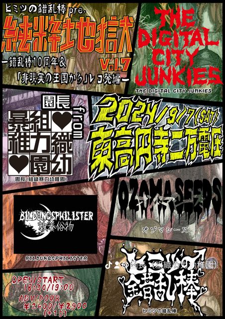 2024ǯ9·î7Æü(ÅÚ) ²ñ¾ì¡§Åì¹â±ß»ûÆóËüÅ۵ ¥Ò¥ß¥Ä¤ÎºøÍðËÀpre.¡É½ã¿èÃϹövol.7¡ÁºøÍðËÀ10¼þǯ¡õ¡ÖÈ󸽼¤β¦¹ñ¤«¤é¡×¥ì¥³È¯ÊÔ¡Á¡É ³«¾ì18:30/³«±é19:00 Á°Çä2400±ß/ÅöÆü2900±ß(¡Ü1drink) [½Ð±é] ¡¦THE DIGITAL CITY JUNKIES ¡¦±àĹ(ÁÈ¿¥Ë½ÎÏÍÄÃÕ±à) ¡¦¥ª¥¾¥Þ¥·¡¼¥º ¡¦BILDUNGSPHILISTER ¡¦¥Ò¥ß¥Ä¤ÎºøÍðËÀ [¥¿¥¤¥à¥Æ¡¼¥Ö¥ë] ¡BILDUNGSPHILISTER¡¡19:00-19:25 ¢¥ª¥¾¥Þ¥·¡¼¥º¡¡19:35-20:00 £±àĹ(ÁÈ¿¥Ë½ÎÏÍÄÃÕ±à)¡¡20:10-20:35 ¤THE DIGITAL CITY JUNKIES¡¡20:45-21:10 ¥¥Ò¥ß¥Ä¤ÎºøÍðËÀ¡¡21:20-21:45 ¡ú¡Ä¡Ä Á°Çä¤ê
