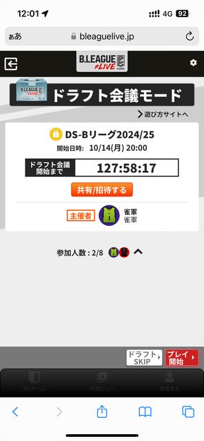 B¥ê¡¼¥°¤Î¥Õ¥¡¥ó¥¿¥¸¡¼¥²¡¼¥à¡¢B.LEAGUE#Live ¤Î¥·¡¼¥º¥ó¥í¥ó¥°¥ê¡¼¥°¤Î»²²Ã¼ÔÊç½¸Ãæ¤Ç¤¹¡ª ´°Á´ÌµÎÁ ¥ª¥ó¥é¥¤¥ó¥É¥é¥Õ¥È¡¡10/14¡Ê½Ë¡Ë ¡¡¡¡20»þ¡Á¡¡2»þ´Ö¤Û¤ÉÁÛÄê 8¿Í¥ê¡¼¥°¤Ç¸½ºß3¿Í¡£¤¢¤È5¿ÍÊ罸¡ª ¤´´õ˾¼Ô¤Ï¤³¤Á¤é¤«¤é ¡Ê¼çºÅ¼Ô¡§¿ý·³¡Ë https://bleaguelive.jp/?ic=B-LEAGUE:DRAFT:league1svPXl0000VBYlB1a8 •¥¢¥«¥¦¥ó¥ÈºîÀ® •Í·¤ÓÊý¤ò¥µ¥¤¥È¤Ç¤´³Îǧ¤¯¤À¤µ¤¤ •¥É¥é¥Õ¥È¤ÎÆü»þ10ʬÁ°¤Ë¤Ï¤Ë¥É¥é¥Õ¥È¥ë¡¼¥à¤ËÆþ¼¼¤¯¤À¤µ¤¤¡£ B¥ê¡¼¥°¥Õ¥¡¥ó¤Î»²²Ã¤ò¤ªÂÔ¤Á¤·¤Æ¤ª¤ê¤Þ¤¹¡ª ´ÑÀï