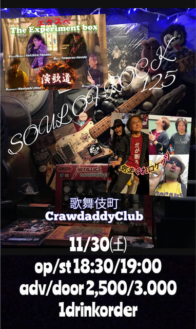 11/30 ËÜÆü¤Î¥é¥¤¥Ö¡¡ SOUL OF ROCK Vol.125¡¡ OPEN 18:30 START 19:00 CHARGE Adv.\2,500 / Day.\3000¡¡ ACT¡¡ µ¤¤Þ¤°¤ì¥í¥±¥Ã¥Ä¡¡ ±é²ÎÆ»¡¡ ¤è¤í¤·¤¯¤ª´ê¤¤¤¤¤¿¤·¤Þ¤¹¡ª¡ª