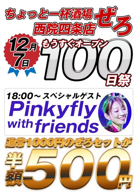 12月7日 ❰ぜろ❱四条店開店100日祭りを開催させていただきます。 ミニライブや通常3杯1000円の❰ぜろ❱セットが半額の500円exclamation お時間ありましたら是非お立ち寄りくださいませ(^-^)/ ちょっと一杯酒場ぜろ 西院四条店 京都府京都市中京区壬生西土居ノ内町20−2 #京都 #西院 #昼飲み #昼呑み #西院昼飲み #西院昼呑み #西院駅 #激安居酒屋 #ちょい呑み #西院飲み歩き #お一人様大歓迎 #お一人女性大歓迎 #3杯1000円 #雨の日割 #レディースデー #100日祭り 開催日 2024年12月07日(土)