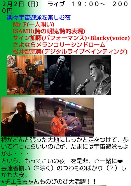 2/2 ËÜÆü¤Î¥é¥¤¥Ö¡¡ º¬´ß²° & 3LOW LIVE¡¡ open 18:30 start 19:00 charge 3000±ß¡¡ ¤è¤í¤·¤¯¤ª´ê¤¤¤¤¤¿¤·¤Þ¤¹¡ª¡ª