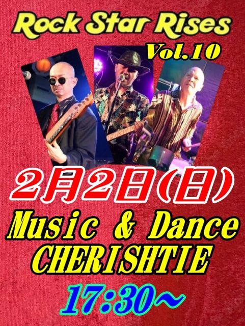 2月2日(日)Music & Dance CHERISHTIE「Rock Star Rises Vol.10」 新年1発目は四日市遠征です。 昨年オープンしたMusic & Dance CHERISHTIEに出演します! 出演 THE GOLD BUG / ベルベルクインテット THE☆TRIBE / CHERISHTIE チャージ¥1000(1ドリンクオーダー別途) 17:00開場 17:30開演 よろしくお願いします(^^)/