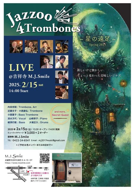 ¢öJazzoo 4 Trombones Live¢ö Æü»þ¡§2·î15Æü¡ÊÅÚ¡Ëopen 13:30 / start 14:00- ¾ì½ê¡§µÈ¾Í»ûMJ Smile https://www.mjsmile.com/ MC¡§3,000±ß¡ù2Éʰʾå¤Î¤´Ãíʸ¤ò¤ª´ê¤¤¤·¤Þ¤¹¡ù ¥á¥ó¥Ð¡¼¡§btb/¾®À¾ÍÕ»Ò¡¡tb/ÆâÅĸ÷¾¼¡¢¶áƣʸ»Ò¡¢¾®À¾¹¯¹°¡¡pf/»³ºê±É»Ò¡¡ba/ºÙƶ¹ÔÈÏ¡¡dr/Âç¾ìÀµµ×¡¡vo/À¶¿åÊýÂå 2/15¡ÊÅڡˤϵפ·¤Ö¤ê¤ÎJazzoo 4 Trombones Live 14»þ¤«¤éµÈ¾Í»ûMJ Smile¤Ç±éÁÕ¤·¤Þ¤¹ ¥Ð¥¹¥È¥í¥ó¥Ü¡¼¥óJazzoo¤µ¤ó¤³¤È¡¢¾®À¾ÍÕ»Ò¤µ¤óΨ¤¤¤ë4tb¡Ü¥Ô¥¢¥Î¥È¥ê¥ª¡Ü²ÎÊÔÀ®¤Ç¤Î²»ºî¤ê Ëè²ó¤È¤Æ¤âÁÇŨ¤Ê»þ´Ö¤Ë¤Ê¤ë¤Î¤Ç¡¢º£²ó¤âËÜÈÖ¤¬