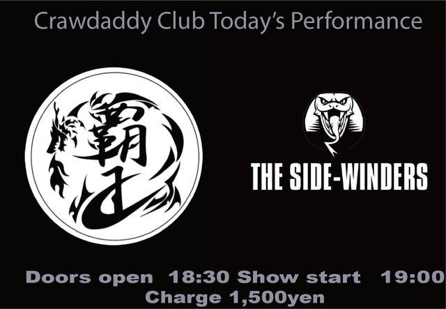 4/6 本日のライブ 覇王 & THE SIDE-WINDERS LIVE OPEN 18:30 START 19:00 CHARGE 1500円 よろしくお願いいたします!!