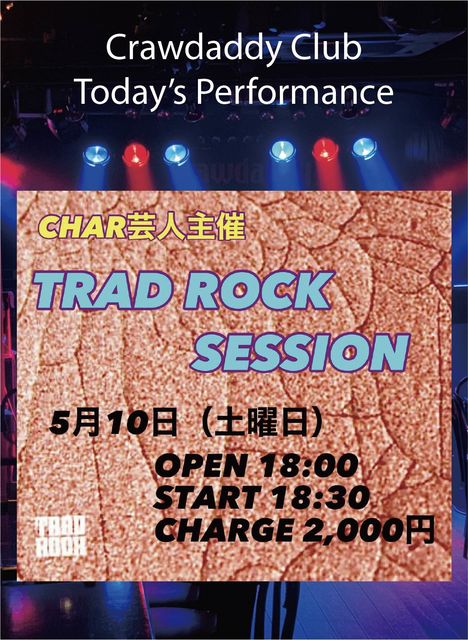 5/10 本日はCHAR芸人主催 【TRAD ROCK SESSION】 OPEN 18:00 START 18:30 CHARGE 2000円 参加のみなさまよろしくお願いいたします!!