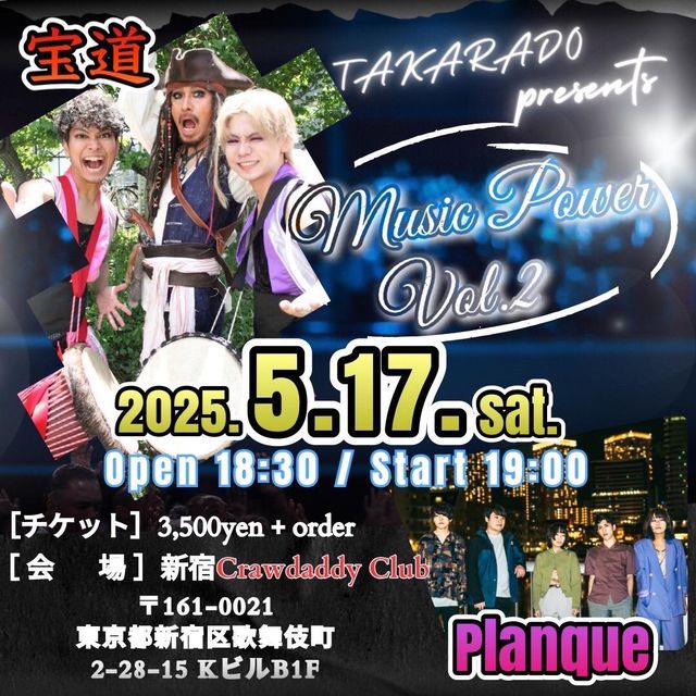 5/17 ËÜÆü¤Î¥é¥¤¥Ö¡¡ ¡ÚMusic Power vol.2¡Û OPEN 18:30 START 19:00 CHARGE 3500±ß¡¡ act¡¡ ÊõÆ»¡¡ Planque¡¡ ¤è¤í¤·¤¯¤ª´ê¤¤¤¤¤¿¤·¤Þ¤¹¡ª¡ª