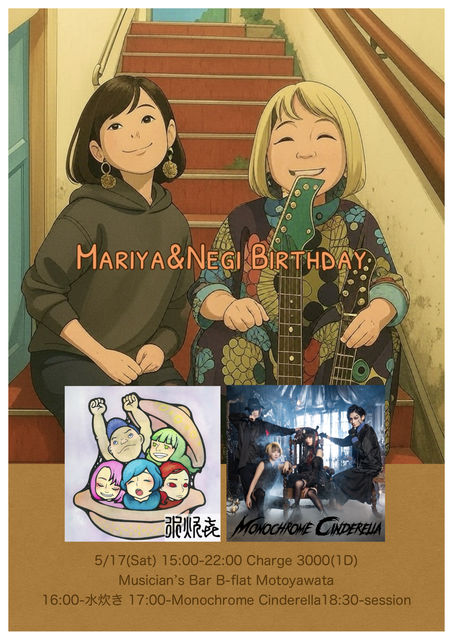 5/17(ÅÚ) ¡ÚMariya¡õNegi Birthday¡Û 15:00-22:00 charge3000(1D)¢¨¥Ñ¥¹»ÈÍÑ²Ä 16:00¡Á¿å¿æ¤ (ÆÃÊÌ¥á¥ó¥Ð¡¼:Negi¡¢µû¡¢¤ê¤ç¤ó¤³¡¢¥³¡¼¥Á¥ó¡¢¤Þ¤ê¤ä) 17:00¡ÁMonochrome Cinderella ¥é¥¤¥Ö¸å¥»¥Ã¥·¥ç¥ó ³§¤µ¤ó¤Î¤ª±¢¤Çº£Ç¯¤Î8·î¤Ç¡¢¤Þ¤ê¤ä¥Ó¡¼¥Õ¥é¶Ð̳10¼þǯ¤Ë¤Ê¤ê¤Þ¤¹ ¤¤¤Ä¤â³§¤µ¤óÍ·¤ó¤Ç¤¯¤ì¤ÆËÜÅö¤Ë¤¢¤ê¤¬¤È¤¦¤´¤¶¤¤¤Þ¤¹¡ª º£Ç¯¤Ï»ä¤Îµîǯ¤«¤é»Ï¤á¤Æ¤¤¤ë¥Ð¥ó¥É¡¢Monochrome Cinderella¤È¡¢¤Í¤®¤Á¤ã¤ó¤Î¥Ð¥ó¥É¿å¿æ¤¤Î¥é¥¤¥Ö¥¹¥Æ¡¼¥¸¤ò¤ªÆÏ¤±¤·¤Þ¤¹¡ª ¿å¿æ¤¤ÏÆÃÊÌ¥á¥ó¥Ð¡¼¤Ç»ä¤â¥®¥¿¡¼¤òÃÆ¤«¤»¤ÆÄº¤¤Þ¤¹