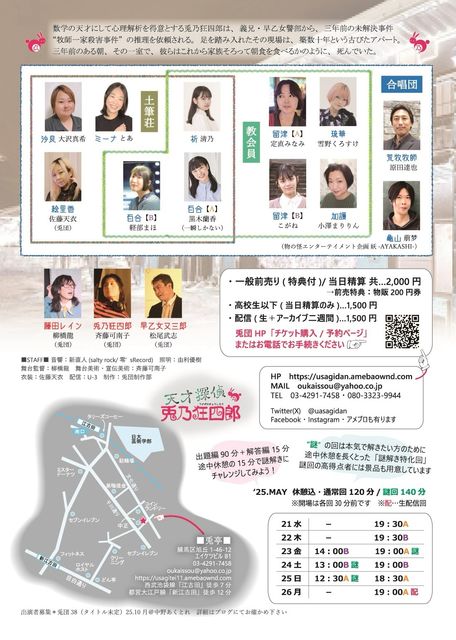 ¤³¤ó¤Ë¤Á¤Ï¡¢ÅÆÃĤȿ½¤·¤Þ¤¹¡£ 2024ǯ¤Î½Õ¸ø±é¤Ç¤â¹¥É¾¤òÇ¤Þ¤·¤¿ ¡ÖÅ·ºÍõÄåÅÆÇµ¶¸»ÍϺ¡×¥·¥ê¡¼¥º¡¢1ǯ¤ÇºÆÅо졪 º£²ó¤â¡ÖÆæ²ò¤ÆÃ²½²ó¡×¤òÀߤ±¤Þ¤·¤¿¡£ ¥¬¥Á¤Ç²ò¤¤¿¤¤Êý¤Ï¡¢ÅÓÃæµÙ·Æ¤¬Ä¹¤¤Ææ²ó¤Ø¤¼¤Ò¡£±é·à¤È¤·¤Æ´Ñ¤¿¤¤Êý¤Ï¡¢µÙ·ÆÃ»¤á¤ÎÄ̾ï²ó¤¬¤è¤¤¤Î¤Ç¤Ï¡£ º£²ó¤Î»ö·ï¤ÎÉñÂæ¤Ï¡ÄÆó¤«½ê¡£ ¶¸»ÍϺ¤¬Â¤òƧ¤ßÆþ¤ì¤¿¡¢¤È¤¢¤ë»ö·ï¸½¾ì¡£ ¤½¤³¤Ë¤Ï¥ì¥¤¥ó¤¬¡©¡ª ÅÆÃÄ37¡Ø¡»¡»¤Ê¤ó¤Æ²¿¤Î°ÕÌ£¤â¤Ê¤¤~Å·ºÍõÄåÅÆÇµ¶¸»ÍϺ~¡Ù ¢£¾å±é¥¹¥±¥¸¥å¡¼¥ë ¢¢²ñ¾ì´ÑÍ÷¡¡Á´9²ó¾å±é 5·î 21Æü(¿å) 19:30¡Á¡ÚA¡Û 22Æü(ÌÚ) 19:30¡Á¡ÚB¡Û 23Æü(¶â