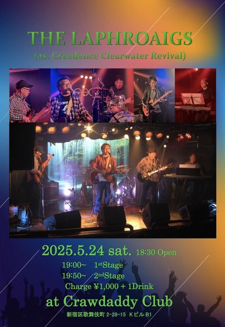 5/24 本日のライブ The Laphroaigs (as Creedence Clearwater Revival) LIVE OPEN 18:30 START 19:00 CHARGE 1000円 よろしくお願いいたします!!