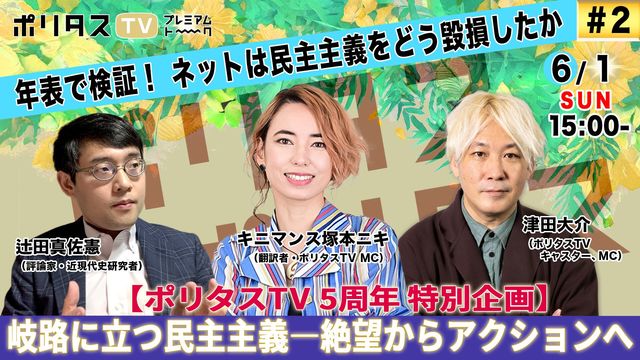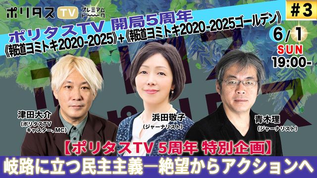 ¡Ú¥Ý¥ê¥¿¥¹TV 5¼þǯ ÆÃÊÌ´ë²è¡¡2025/6/01¡Ë13:00¤«¤é¡Û´ôÏ©¤ËΩ¤Ä̱¼ç¼çµÁ¡½¡½Àä˾¤«¤é¥¢¥¯¥·¥ç¥ó¤Ø¡ÚÄÅÅÄÂç²ð¡¢´ßËÜÁï»Ò¡¢ºäËÜÈþ±«¡¢ÏÂÅÄðйᡢÄÔÅÄ¿¿º´·û¡¢¥¥Ë¥Þ¥ó¥¹ÄÍËܥ˥¡¢ÀÄÌÚÍý¡¢ÉÍÅÄ·É»Ò¡Û 6/1¡ÊÆü¡Ë13:00-¡ü#1¡Ô¤É¤¦¤¹¤ì¤Ð̱¼ç¼çµÁ¤ò¡Ò¿®¤¸Â³¤±¤é¤ì¤ë¡Ó¤Î¤«¡Õ ¡Î½Ð±é¡Ï ´ßËÜÁï»Ò¡Ê¿ùʶèĹ¡Ë ºäËÜÈþ±«¡Ê¥ß¥å¡¼¥¸¥·¥ã¥ó¡Ë ÏÂÅÄðйá¡Ê¥é¥¤¥¿¡¼¡¢MC¡Ë ÄÅÅÄÂç²ð¡Ê¥Ý¥ê¥¿¥¹TV¥¥ã¥¹¥¿¡¼¡¢MC¡Ë 6/1¡ÊÆü¡Ë15:00-¡¡¡ü#2¡Ôǯɽ¤Ç¸¡¾Ú¡ª ¥Í¥Ã¥È¤Ï̱¼ç¼çµÁ¤ò¤É¤¦ÔÌ»¤·¤¿¤«¡Õ ¡Î½Ð±é¡Ï ÄÔÅÄ¿¿º´·û¡ÊɾÏÀ²È¡¦¶á¸½Âå»Ë¸¦µæ¼Ô¡Ë ¥¥Ë