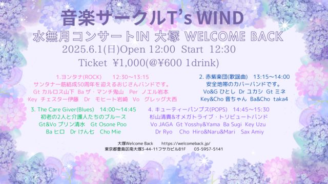 2025ǯ£¶·î£±Æü¡ÊÆü¡ËCRAZY JAM LIVE¡ª¡¡¤Ë¤´½Ð±é¤¢¤ê¤¬¤È¤¦¤´¤¶¤¤¤Þ¤¹¡£ ÅöÆü¤ÎÂǤÁ¹ç¤ï¤»¤Ï¤³¤Á¤é¤Ç¤´ÁêÃ̤·¤Ê¤¬¤é¿Ê¤á¤Æ¤Þ¤¤¤ê¤Þ¤¹¡£ ¥Ð¡¼¥¹¥Ç¡¼¤Î¤ª½Ë¤¤¥Ð¥ó¥É¤Î¤´½Ð±é¤â´¿·Þ¤Ç¤¹¡£ ¥¨¥ó¥È¥ê¡¼¤Ï¡¢Âåɽ¼Ô¤ÎÊý¤Ë¥³¥á¥ó¥È¤ò¤¤¤¿¤À¤¡¢¤´»²²Ã¤¯¤À¤µ¤¤¡£ ¡Ê¤½¤ì¤Ë¤è¤Ã¤Æ¡¢¤ª¿½¤·¹þ¤ß¤È¤Ê¤ê¡¢¤Þ¤¿¹¹¿·¤ÎÄÌÃΤ¬¹Ô¤¯¤È»×¤¤¤Þ¤¹¡Ë ¢¡½Ð±é¼ÔÊ罸¡Ú¤¢¤È£±ÁÈÊç½¸Ãæ¡ª¡ª¡Û¡Ê·É¾Îά¡Ë ¡¦¤Á¤ï¤Á¤ï¡Êaiko cover¡Ë ¡¡¡¡Vo ¤È¤â¤Á¡¼¡¢EG TAKE¡¢Key:¤Þ¤µ¤ä¡¢Ba:¾®Çß¡¢Dr:¤Ï¤ä¤È¡ù¤ä¤Ã¤Ô¤£ ¡¦Yoko Meets Friends ¡¡¡¡Vo.¤è¡¼¤³¡¡Eg.¡¡Key.¡¡Ba.¡¡Dr.