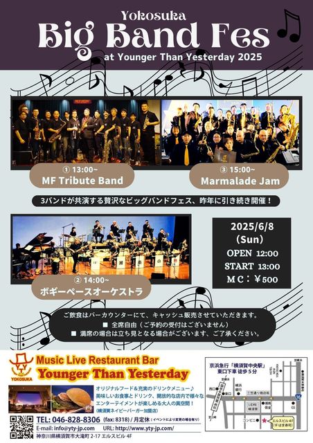 6/8¡ÊÆü¡Ë¤Ë²£¿Ü²ìYounger Than Yesterday¤Ç³«ºÅ¤µ¤ì¤ëYokosuka Big Band Fes.¤Ë»²²Ã¤·¤Þ¤¹