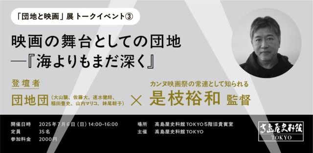 7月6日(日)14〜16時 是枝裕和 監督 × 団地団(大山顕さん、佐藤大さん、速水健朗さん、稲田豊史さん、山内マリコさん、妹尾朝子さん)映画の舞台としての団地−『海よりもまだ深く』@高島屋史料館TOKYO https://takashimaya-shiryokan-danchi3.peatix.com/