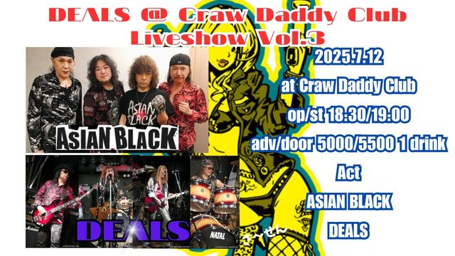 7/12 ËÜÆü¤Î¥é¥¤¥Ö¡¡ DEALS & ASIAN BLACK LIVE¡¡ OPEN 18:30 START 19:00 CHARGE adv/door \5000/\5500¡¡ ¤è¤í¤·¤¯¤ª´ê¤¤¤¤¤¿¤·¤Þ¤¹¡ª¡ª