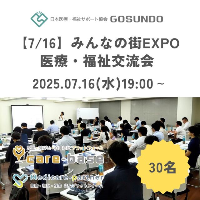 皆さま、こんばんは😊 いつもご閲覧ありがとうございます✨ 7月のみんなの街EXPO〜医療・福祉交流会〜のご案内となります♪ 対象 医科、歯科、看護、福祉、リハビリ、保育、教育、士業、行政機関など 日程 7/16(水)19:00〜 場所 大阪市北区豊崎3-20-9 三栄ビル3F 参加費 3000円/1名(弁当・お茶付き) ※Pitchご希望の方は先着2社となりますので、申込み欄の「Pitch希望」にチェックしてお申込みください😄 皆さまのお知り合いの事業所さまもお声がけの上、皆さんで交流しましょう✨️ ▼お申込みはこちら