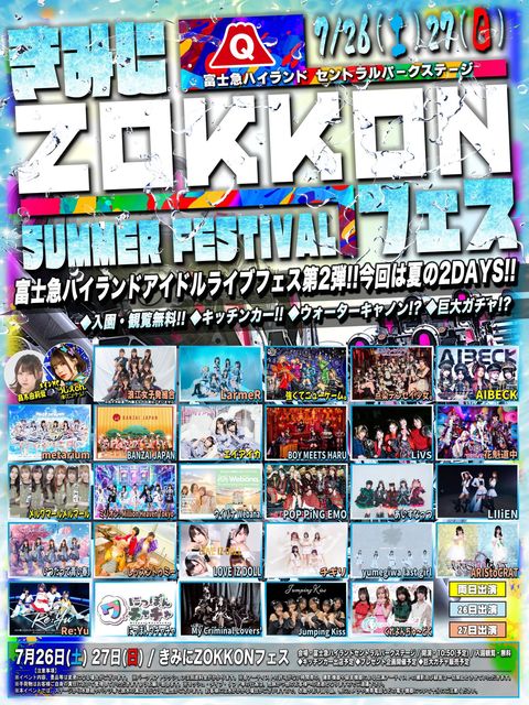 ¡Ö¤¤ß¤ËZOKKON¥Õ¥§¥¹¡×https://www.fujiq.jp/event/zokkonfes_2025summer.html Æü»þ¡§07/26(ÅÚ)¡Á27(Æü) ³«±é10:50 ²ñ¾ì¡§ Éٻεޥϥ¤¥é¥ó¥É ¥»¥ó¥È¥é¥ë¥Ñ¡¼¥¯¥¹¥Æ¡¼¥¸ Æþ±à̵ÎÁ ¥á¥¤¥óMC¡§üâÌÚͳ轰¦ / ¤¦¤¸¤¨ch.