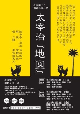 時間 : 19:30〜 (21:00終了予定) ※定刻にお出で願います。恐れ入りますが、開始10分前以前のご到着はご遠慮ください。 イベント内容 : プリントを配り、その場で朗読し、皆で感想を言い合います。事前に読むなどの準備不要。持参するものは会費以外になし。手ぶらでお気軽にどうぞ。 作品 : 太宰治「鈴打」「哀蚊」「花火」(太宰治『地図』 (新潮文庫)に所収) 選定・司会: みけねこさん・アリスさん 【参加費】 1000円(紅茶またはワイン1杯付き) お食事をご希望になることはできません。 【お土産につい