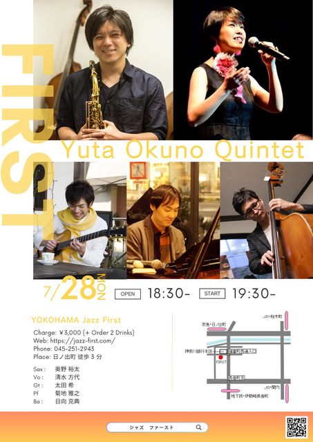 日時:7月28日(月)open 18:30 / start 19:30- 場所:日ノ出町JAZZ FIRST https://jazz-first.com/ MC:3,000円☆2品以上のご注文をお願いします☆ メンバー:a.sax/奥野裕太 gt/太田希 pf/菊地雅之 ba/日向克典 vo/清水方代 来週はお世話になっているサックス奥野裕太さんグループでのライブが2本あります ひとつ目は7/28(月)19時半から、日ノ出町JAZZ FIRSTにて 日ノ出町JAZZ FIRSTは、壁にレコードの並ぶjazzyなお店で、老舗ならではの、しっとり落ち着いた雰囲気の空間 ゆるゆる食べながら呑みながら、お過ご