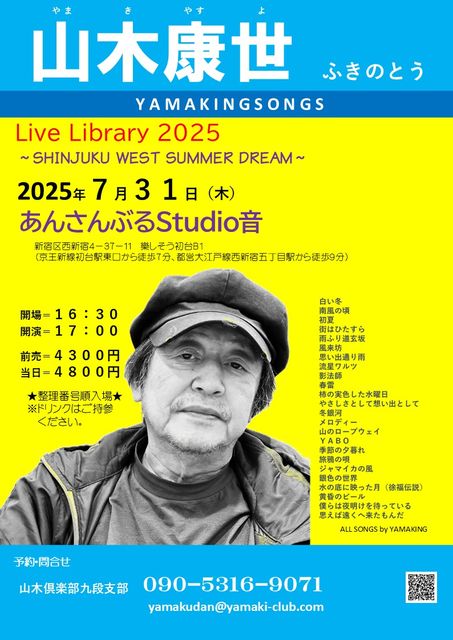 202£µÇ¯£··î£³£±Æü¡ÊÌÚ¡Ë ¡Ö»³ÌÚ¹¯À¤ Live Library £²£°£²£µ¡× ¡ÁSHINJUKU WEST SUMMER DREAM¡Á ²ñ¾ì¡á¤¢¤ó¤µ¤ó¤Ö¤ëStudio²» ¿·½É¶èÀ¾¿·½É£´¡Ý£³£·¡Ý£±£±¡¡ÜÛ¤·¤½¤¦½éÂæB1 ¡Êµþ²¦¿·Àþ½éÂæ±ØÅì¸ý¤«¤éÅÌÊâ7ʬ¡¢ÅÔ±ÄÂç¹¾¸ÍÀþÀ¾¿·½É¸ÞÃúÌܱؤ«¤éÅÌÊâ9ʬ) ³«¾ì¡á£±£¶¡§£³£°¡¡³«±é¡á£±£·¡§£°£° Á°Çä¡á£´£³£°£°±ß¡¡ÅöÆü¡á£´£¸£°£°±ß ¡úÀ°ÍýÈÖ¹æ½çÆþ¾ì¡ú¡¡ ¢¨¥É¥ê¥ó¥¯¤Ï¤´»ý»²¤¯¤À¤µ¤¤¡£ ͽÌó¡¦Ìä¹ç¤» £°£¹£°¡Ý£µ£³£±£¶¡Ý£¹£°£·£± ¡Ê»³ÌÚ¶æ³ÚÉô¶åÃÊ»ÙÉô¡Ë¡¡ yamakudan@yamaki-club.com