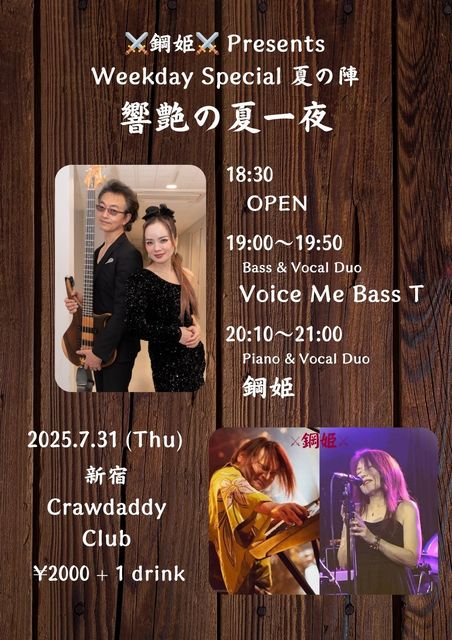 7/31 ËÜÆü¤Î¥é¥¤¥Ö¡¡ ¹Ýɱ Presents-Weekday Special ²Æ¤Î¿Ø¡Ö¶Á±ð¤Î²Æ°ìÌë¡× OPEN 18:30 START 19:00 CHARGE 2000±ß¡¡ act¡¡ 19:00~ Voice Me Base T¡¡ 20:10~ ¹Ýɱ¡¡ ¤è¤í¤·¤¯¤ª´ê¤¤¤¤¤¿¤·¤Þ¤¹¡ª¡ª