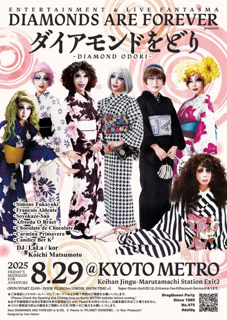2025 08 29 Friday @ µþÅÔ´ÝÂÀÄ® CLUB METRO DIAMONDS ARE FOREVER presents ¥À¥¤¥¢¥â¥ó¥É¤ò¤É¤ê¡¡ Open/Start 10:00 \2000 (w/1drink) Show-Time 11:50 ¡õ midnight Food PELGAG DJ LaLa DJ kor DJ Koichi Matsumoto ¥·¥â¡¼¥Ì¿¼Àã / ¥Õ¥é¥ó¥½¥ï¡¦¥¢¥ë¥Ç¥ó¥Æ / ¤½¤èÉ÷¤µ¤ó / ¥¢¥Õ¥ê¡¼¥À¡¦¥ª¡¼¡¦¥Ö¥é¡¼¥È / ¥·¥ç¥³¥é¡¦¥É¡¦¥·¥ç¥³¥é / ¥«¥ë¥ß¥Ê¡¦¥×¥ê¥Þ¥ô¥§¡¼¥é / ¥¥ã¥ó¥Ç¥£¥¹¡¦¥Ð¡¼¡¦K¡¡and more