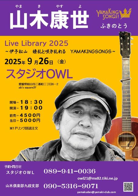 ¡Ö»³ÌÚ¹¯À¤¡¡Live Library £²£°£²£µ¡× ¡Á°Ëͽ¾¾»³¡¡åçÍð¤Èºé¤Íð¤ì¤ë¡¡YAMAKINGSONGS¡Á ²ñ¾ì¡á¥¹¥¿¥¸¥ªOWL https://owl21.info/ °¦É²¸©¾¾»³»Ô»°ÈÖÄ®»°ÃúÌÜ£¶¡Ý£²¡¡ab¡Çs square£²£Æ ³«¾ì¡á£±£¸¡§£³£°¡¡³«±é¡á£±£¹¡§£°£° Á°Çä¡á£´£µ£°£°±ß¡¡ÅöÆü¡á£µ£°£°£°±ß ¡ú1¥É¥ê¥ó¥¯ÊÌÅÓÃíʸ ͽÌó¡¦Ìä¹ç¤» ¥¹¥¿¥¸¥ªOWL¡¡¡¡¡¡ £°£¸£¹¡Ý£¹£´£±¡Ý£°£°£³£¶¡¡owl21@mx82.tiki.ne.jp »³ÌÚ¶æ³ÚÉô¶åÃÊ»ÙÉô £°£¹£°¡Ý£µ£³£±£¶¡Ý£¹£°£·£± yamakudan@yamaki-club.com