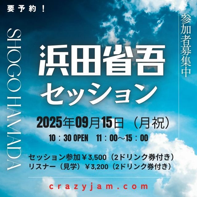 9/14¡ÊÆü¡ËÂè44²ó¡¡¾¾ÅÄÀ»»Ò¥È¥ê¥Ó¥å¡¼¥È¥»¥Ã¥·¥ç¥ó¡Ê»Å¹þ¤ß·Ï¡Ë ¥Ü¡¼¥«¥ë¤µ¤ó¡¢³Ú´ï¥×¥ì¥¤¥ä¡¼¤µ¤ó¡¢¤´»²²Ã¤ò¤ªÂÔ¤Á¤·¤Æ¤ª¤ê¤Þ¤¹¡£ ¡ú¡úÂè44²ó ¾¾ÅÄÀ»»Ò¥»¥Ã¥·¥ç¥ó¡ú¡ú ¡¡Æü»þ¡¡2025ǯ 9·î14Æü¡ÊÆü)¡¡10¡§30¥ª¡¼¥×¥ó 11¡§00¥¹¥¿¡¼¥È¡Á15¡§00 ¡¡²ñ¾ì¡¡Î©Àî CRAZY JAM¡¡ http://www.crazyjam.com ¡¡¥»¥Ã¥·¥ç¥ó»²²Ã¡¡3,500±ß¡ÊÀǹþ¡¢£²¥É¥ê¥ó¥¯ÉÕ¡Ë ¡¡¥ê¥¹¥Ê¡¼»²²Ã¡¡¡¡3,200±ß¡ÊÀǹþ¡¡2¥É¥ê¥ó¥¯ÉÕ¡Ë ¡¡½ªÎ»¸å2»þ´ÖÄøÅÙ¡¢ÂǤÁ¾å¤²¤¢¤ê¡¡1,800±ß¡¡¡ÊÀǹþ¤ß¡¢¡¡¥Õ¡¼¥É¡¢£±¥É¥ê¥ó¥¯ÉÕ¡Ë ¡¡ ¡¡¿Ê¹Ô¡¡CJ¥¹¥¿¥Ã¥Õ¡¡¡¡ ¡¡¥Û¥¹¥È¡¡¥¿¥«¥®¥è