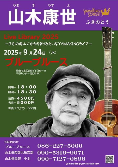 ¡Ö»³ÌÚ¹¯À¤¡¡Live Library £²£°£²£µ¡× ¡Á£¹·î¤Î²¬»³¤Ë¤«¤«¤ê¤¤ê¤ß¤¿¤¤¤ÊYAMAKING¥é¥¤¥Ö¡Á ²ñ¾ì¡á¥Ö¥ë¡¼¥Ö¥ë¡¼¥¹ ²¬»³»ÔË̶èɽĮ£³ÃúÌÜ£±£²¡¼£±£² ÀéÆü¥»¥ó¥¿¡¼³¹¥Ó¥ë2F 086-227-5000 ³«¾ì¡á£±£¸¡§£°£°¡¡³«±é¡á£±£¸¡§£³£° Á°Çä¡á£´£µ£°£°±ß¡¡ÅöÆü¡á£µ£°£°£°±ß ¢¨Íס¡1¥É¥ê¥ó¥¯500±ß¡¡ ͽÌó¡¦Ìä¹ç¤» £°£¸£¶¡Ý£²£²£·¡Ý£µ£°£°£°¡Ê¥Ö¥ë¡¼¥Ö¥ë¡¼¥¹¡Ë £°£¹£°¡Ý£µ£³£±£¶¡Ý£¹£°£·£±¡Ê»³ÌÚ¶æ³ÚÉô¶åÃÊ»ÙÉô¡Ë £°£¹£°¡Ý£·£±£²£·¡Ý£°£¸£¹£¶¡ÊÃæËÜ¡Ë yamakudan@yamaki-club.com