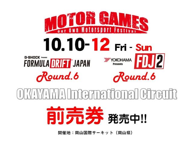 10月10日(金)・11日(土)・12日(日)の3日間、岡山県の岡山国際サーキットで開催いたします【MOTOR GA,MES(FD JAPAN Round.6 / FDJ2 Round.6)】の前売入場券が発売中です。 今シーズンの最終戦となるFD JAPAN/FDJ2は、シリーズチャンピオンが決定する大事な1戦となります。決定的瞬間をぜひ現地でご観戦ください。 ベンダーブースエリアのど真ん中ではバイクコンテンツの「FMX SHOWCASE」を開催。トップクラスのライダーによるアクロバティックなトリックにも大注目。 前売入場券は、当日券よりお得ですので、観戦を予定している方は前