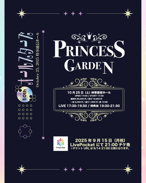 ɱÄí10¼þǯµÇ°¥é¥¤¥Ö¡ÖɱÄí¥ª¡¼¥ë¥¹¥¿¡¼¥º¡× Áí¹çMC¡§üâÌÚͳ轰¦ Æü»þ¡§10/25(ÅÚ) ³«¾ì 17:00 / ³«»þ 17:30 ²ñ¾ì¡§»þ»öÄÌ¿®¥Û¡¼¥ë ÎÁ¶â¡§ºÇÁ° 30,000±ß / Á°Êý 10,000±ß / °ìÈÌ 3,000±ß / ¸åÊýÇäÀÚ (DÊÌ) ¥Á¥±¥Ã¥È¡§https://t.livepocket.jp/e/pg10th_allstars