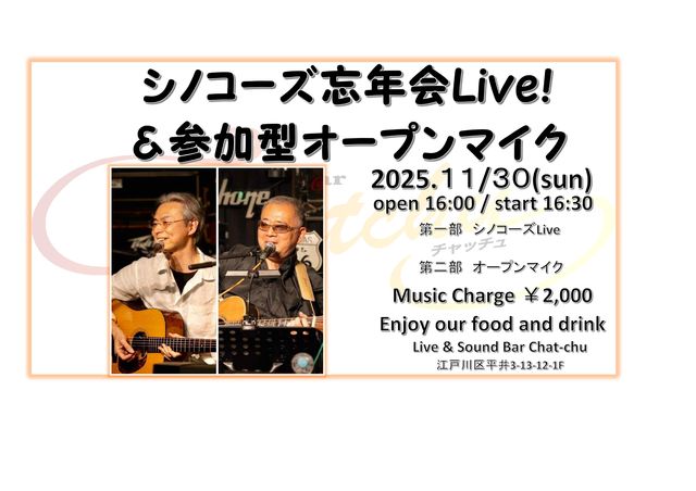 Åö½éͽÄꤷ¤Æ¤¤¤Þ¤·¤¿11·î30Æü¤Î¥¤¥Ù¥ó¥È¤Ç¤¹¤¬¡¢½ô»ö¾ð¤Ë¤è¤ê²¼µ¤ËÆâÍÆÊѹ¹¤È¤Ê¤ê¤Þ¤·¤¿¡£ ÀèÇÚ¡ª¤è¤í¤·¤¯¤ª´ê¤¤¤¤¤¿¤·¤Þ¤¹¡ª¡ª ¡ú¥·¥Î¥³¡¼¥ºËºÇ¯²ñLive ¡õ»²²Ã·¿¥ª¡¼¥×¥ó¥Þ¥¤¥¯¡ú 2025ǯ£±£±·î£³£°Æü¡ÊÆü¡Ë Open¡¡16:00 Start¡¡16:30 Âè°ìÉô¡¡¥·¥Î¥³¡¼¥ºLive µÙ·Æ ÂèÆóÉô¡¡»²²Ã·¿¥ª¡¼¥×¥ó¥Þ¥¤¥¯ ŹÆâ¥¥ã¥Ñ¥·¥Æ¥£¤Î´Ø·¸¾å¡¢15̾ÍÍÀèÃå¤È¤µ¤»¤ÆÄº¤¤Þ¤¹¡£ ¤´Í½Ìó¤Ï¤³¤Á¤é¤Î¥¤¥Ù¥ó¥È¤Ø¥³¥á¥ó¥È¤·¤ÆÄº¤¯¤«¡¢Å¹¼ç¥è¥·¥à¥é¤Þ¤Ç¥á¥Ã¥»¡¼¥¸¤ò¤ª´ê¤¤¤¤¤¿¤·¤Þ¤¹¡£